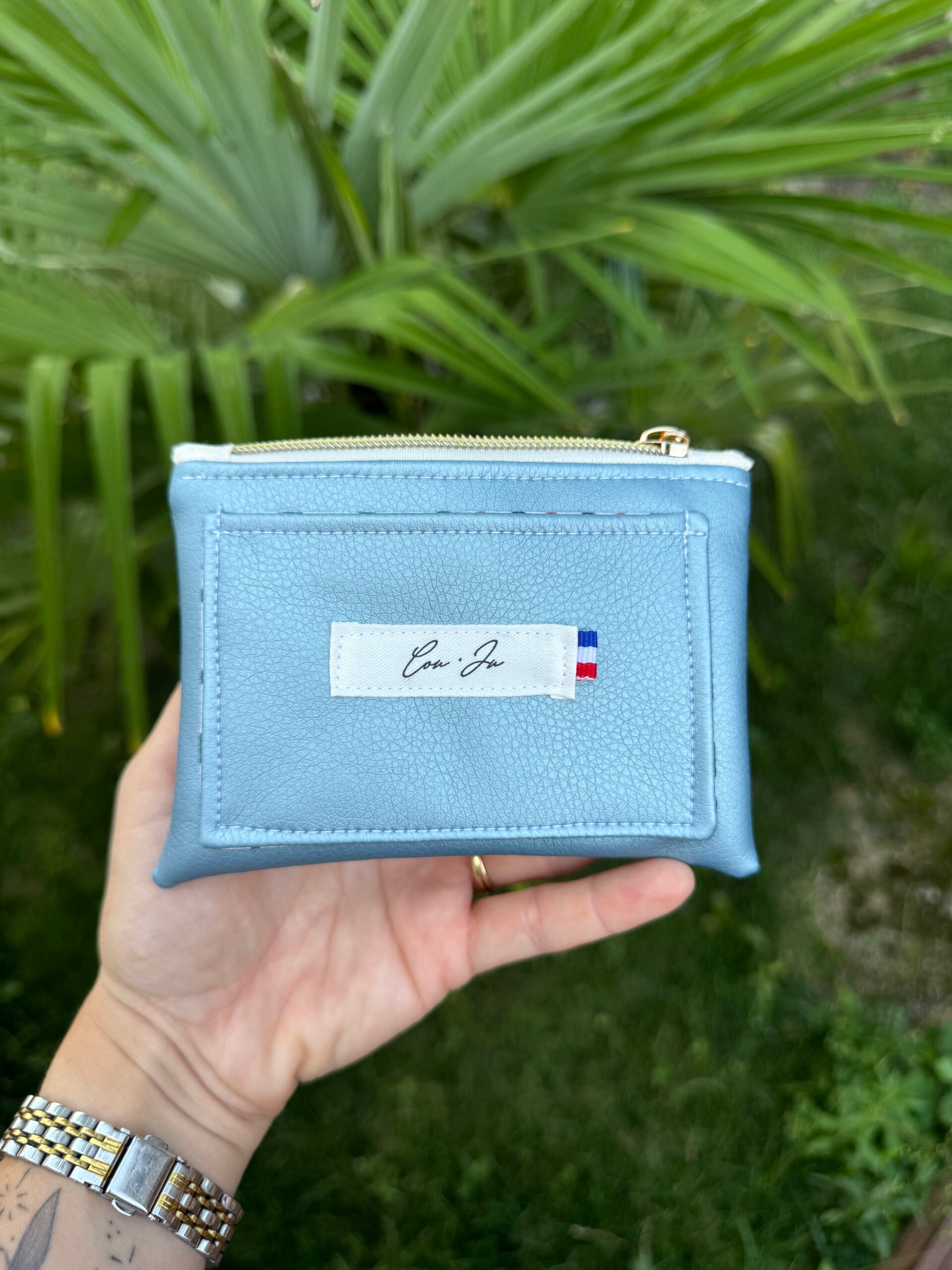 Pratique et élégant, ce porte-monnaie en simili cuir bleu ciel est l’accessoire parfait pour glisser dans ton sac au quotidien.