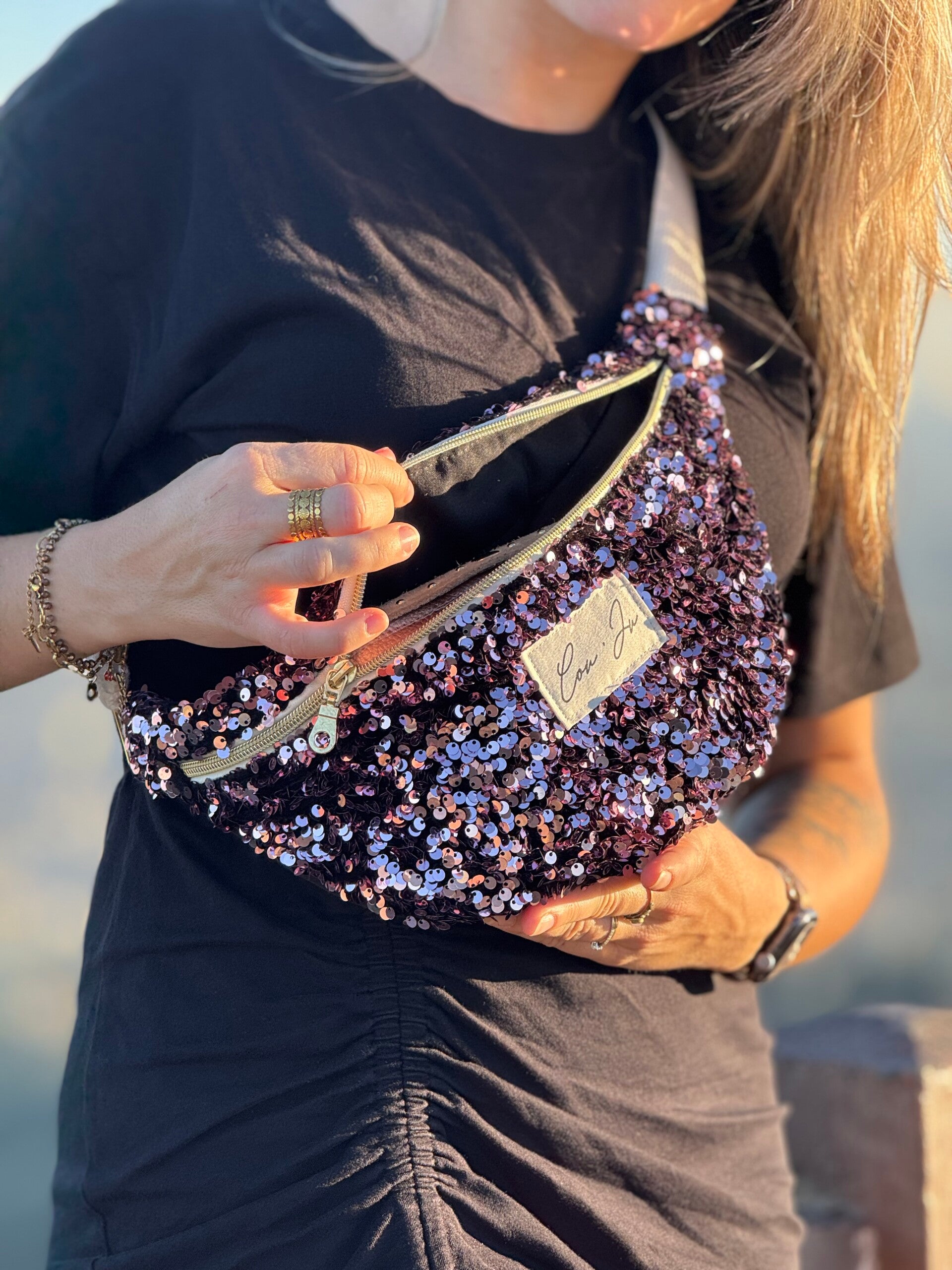 - Sequins lumineux, dos de la banane en coton noir & doublure intérieure coton noir
